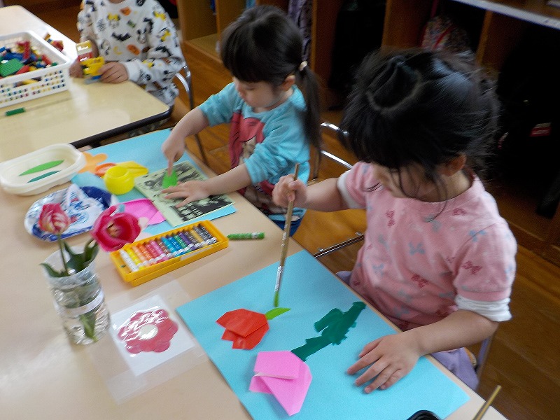 新年度きりん組が元気いっぱいスタートしました。3歳児4名、4歳児12名 計16名。毎日、笑って 泣いて 怒って、また笑って 喜怒哀楽をフル活動させ過ごしています!3・4歳児混合クラスということで今はバタバタしておりますが相乗効果が出てくる予感がしています♪子どもたちの1年間の成長が楽しみです?