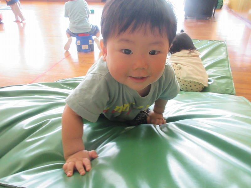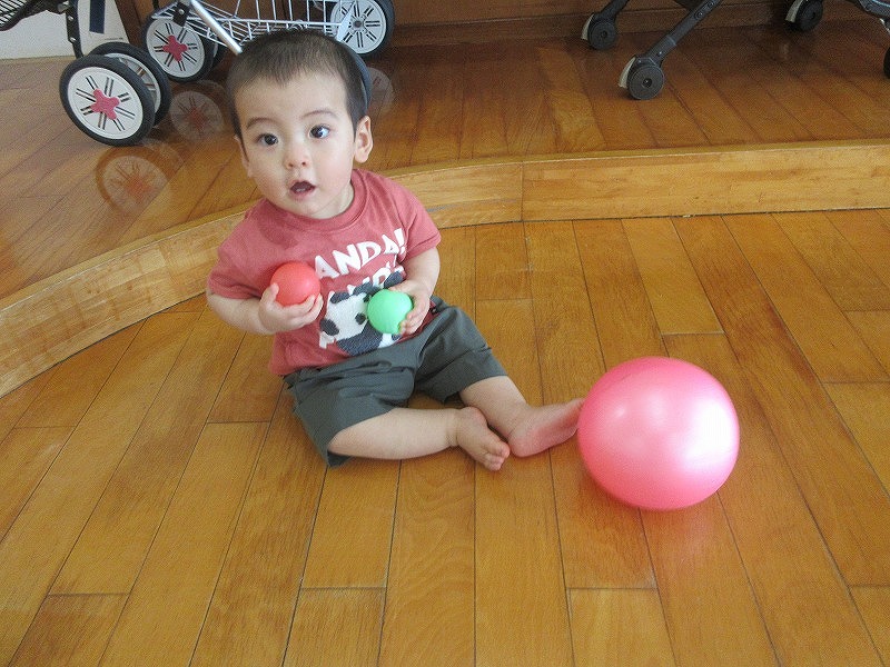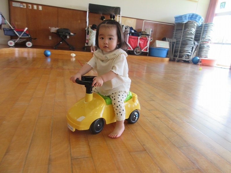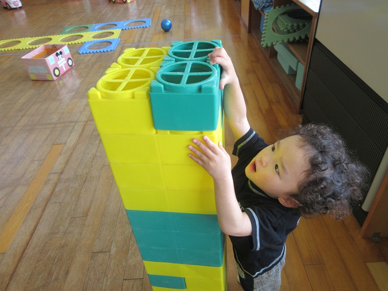 暑い日にはホール遊び!積み木を高く積んだり、車やボールで好きな遊びを楽しんでいます。かけっこや運動遊びで