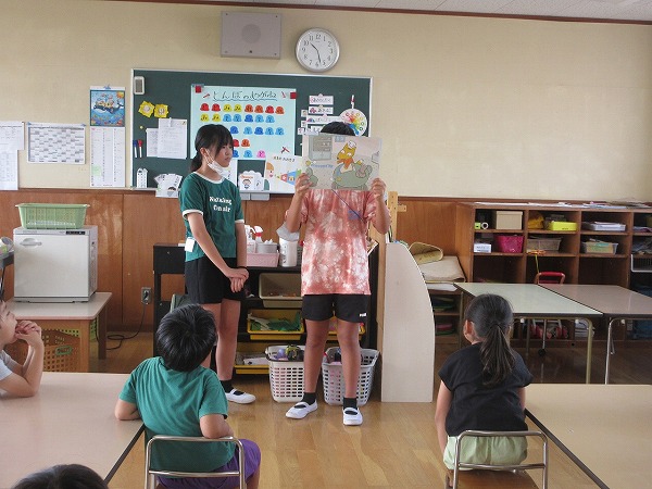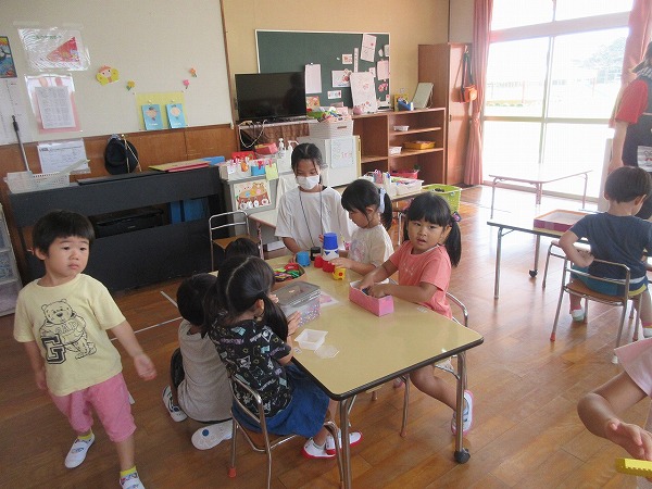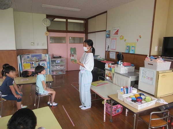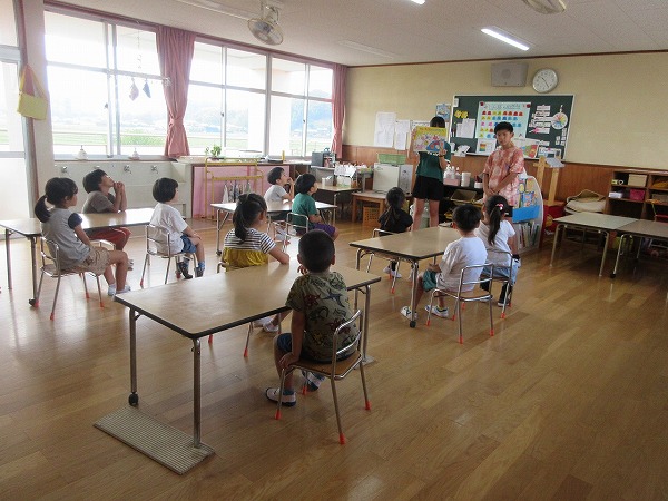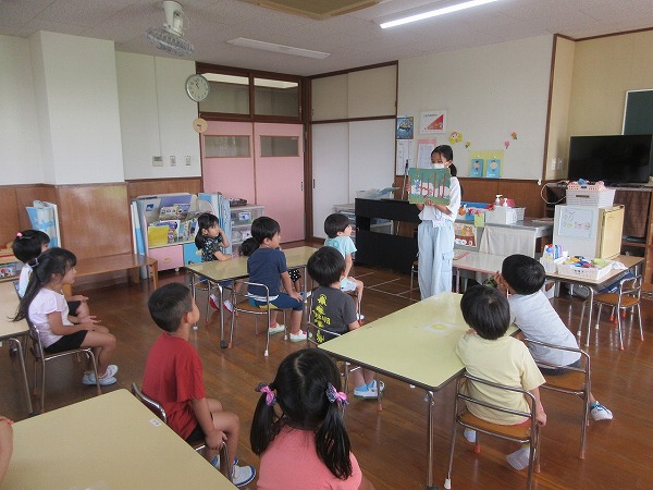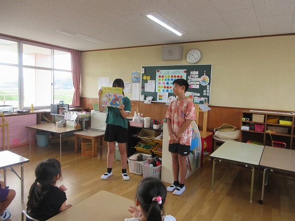 今日は山田小学校6年生の3名のお兄さん、お姉さんが夢ぴったり体験で保育園に来ました。一緒に体操をしたり、遊んだり、紙芝居を読んでもらったりして、子ども達も喜んでいました。小学生のお兄さん、お姉さんも良い経験が出来たのではないでしょうか。