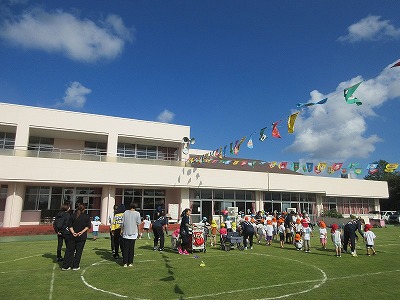 先週金曜日(10月10日)本年度の運動会を開催しました。ご来賓の皆様、保護者の皆様、役員の皆様、お忙しい中ご参加、ご協力ありがとうございました。心配された台風の影響もなく、お天気に恵まれた1日でした。子ども達に沢山の拍手もありがとうございました。子ども達も笑顔で頑張ることが出来ました。また、子ども達の成長を保護者の皆様に見てもらえる機会となり、私達職員一同もとても嬉しかったです。これからも、子ども達の成長を保護者の皆様と一緒にお手伝いさせて頂けたらと思います。宜しくお願い致します。
