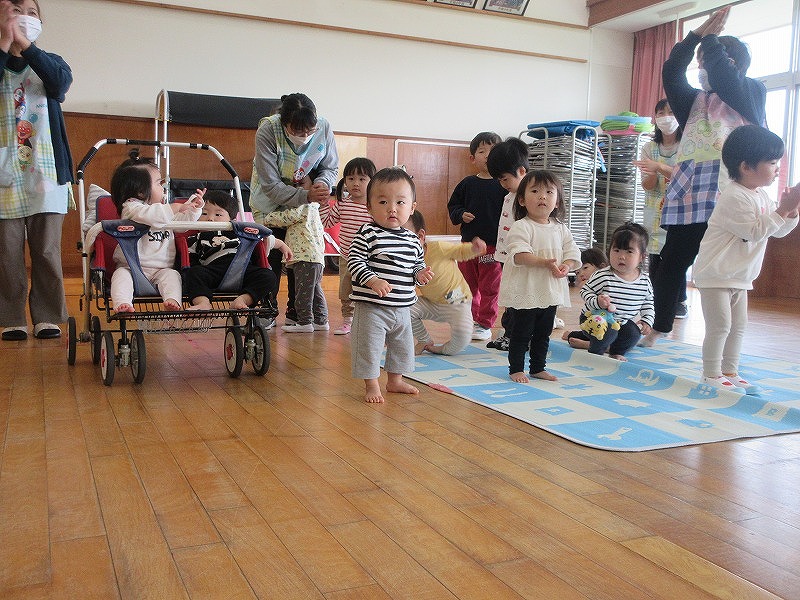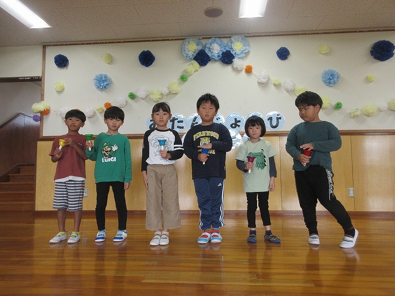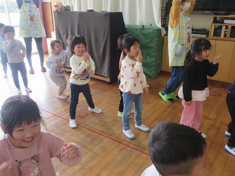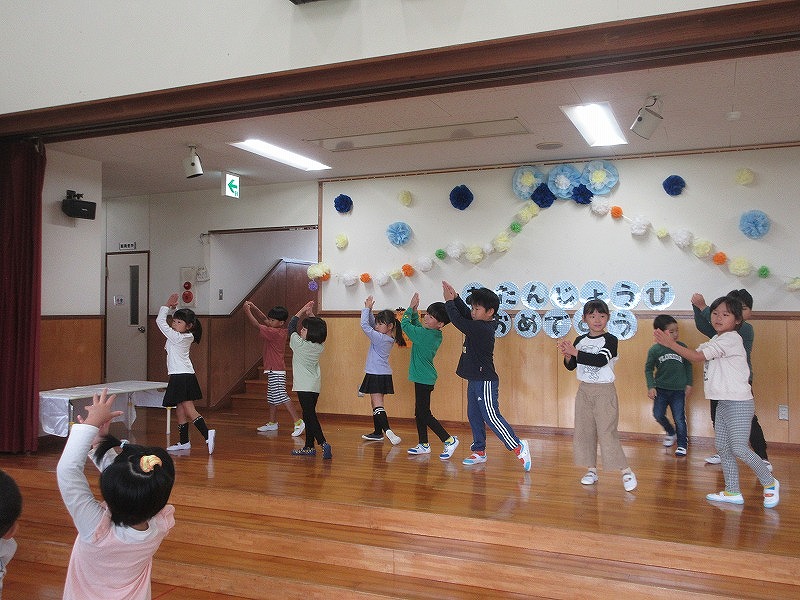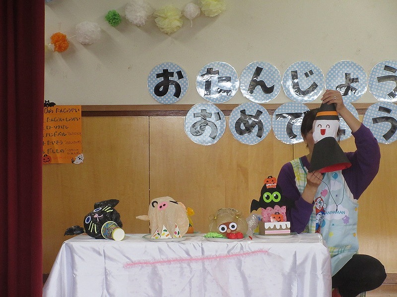 10月の誕生児は1名。皆からたくさんでの拍手でお祝いしてもらいました!先生からのインタビューにもしっかり答え成長を感じますね?皆で体操をしたり出し物を見て大盛り上がりの子ども達です。