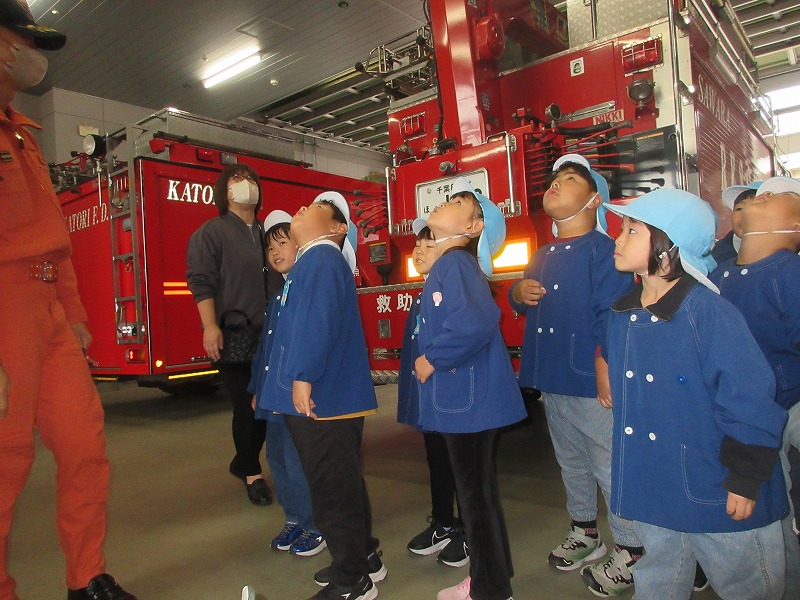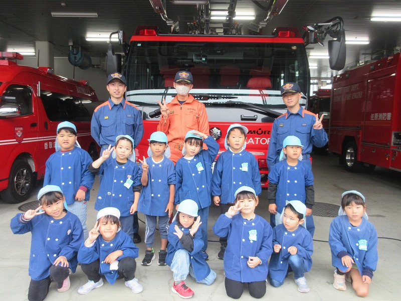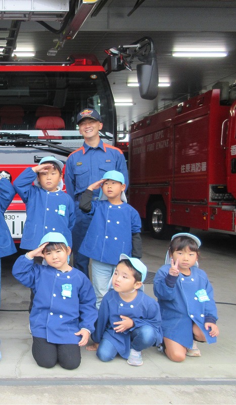 うさぎ組の子ども達12名と佐原消防署に見学に行って来ました!!消防署に着き、まずは署内を見せて頂きました。はしご消防車が見たいと楽しみにしていたので、乗せて頂くと目を輝かせ大喜びでした。佐原消防署の皆さんお忙しいところありがとうございました。