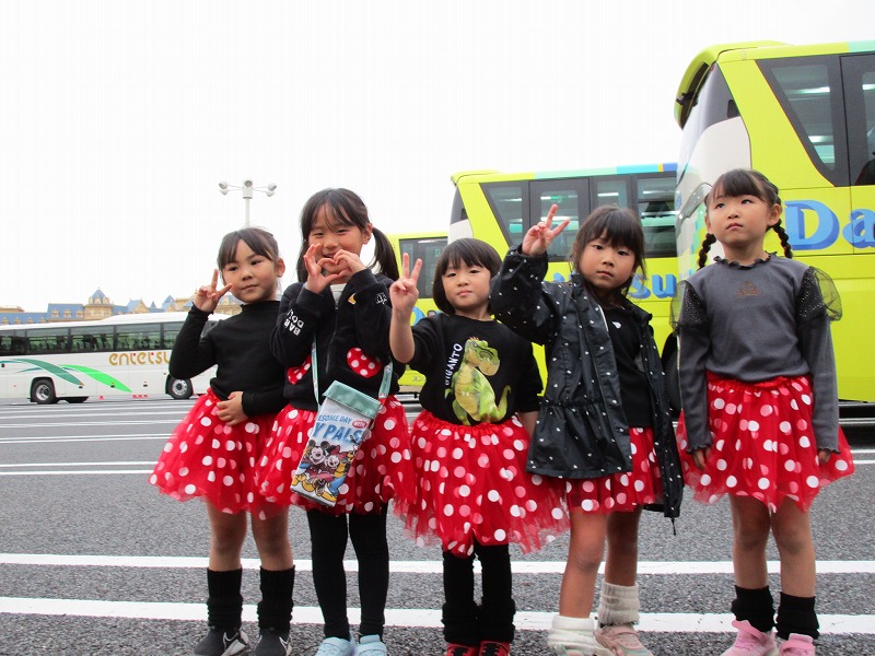 子ども達の楽しみにしていた親子遠足(ディズニーランド)。お天気にも恵まれて楽しい1日になったことでしょう。お友達と一緒にバスに乗る事も楽しみの1つだったと思います。
