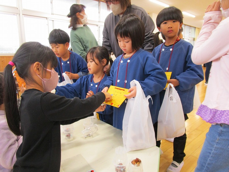 今日は4月から通う山田小学校の1年生と交流会を楽しんできました。小学校に着くと1年生のお兄さんお姉さんに笑顔で出迎えてもらえた事で緊張がやわらいだようです。小学生がお店屋さんの担当となり楽しい時間を過ごす事も出来ました。小学校への期待や憧れが高まったようにも思います。山田小学校の皆さんありがとうございました。