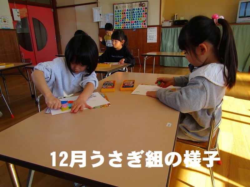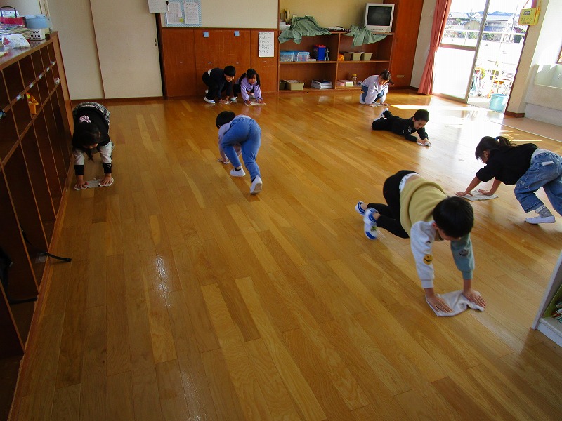 今月は色々な行事があり子どもたちにとってはワクワクとドキドキの1ヶ月だったようです。新年を迎える為に部屋の大掃除をし、床やロッカーなどを雑巾を使い「ありがとう」と感謝を込めてピカピカに磨きました☆掃除をやり切り達成感や満足感を感じられたようです。子供たちと綺麗にした部屋で、新年を気持ちよく迎えたいと思います。