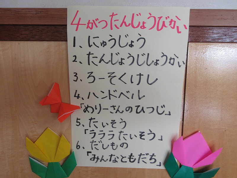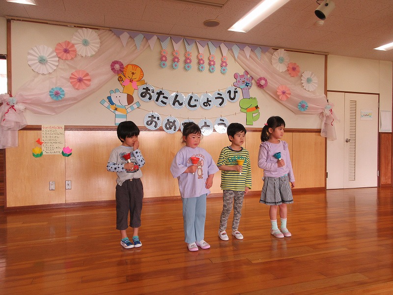 うららかな陽気と共に、今年度がスタートして約1カ月がたちましたね。今日は4月生まれのお友達のお誕生会でした。