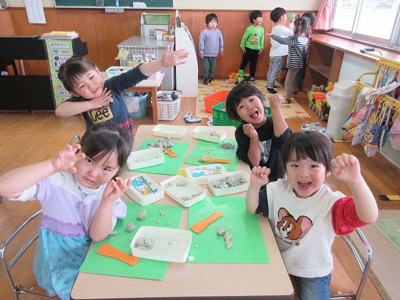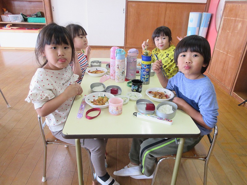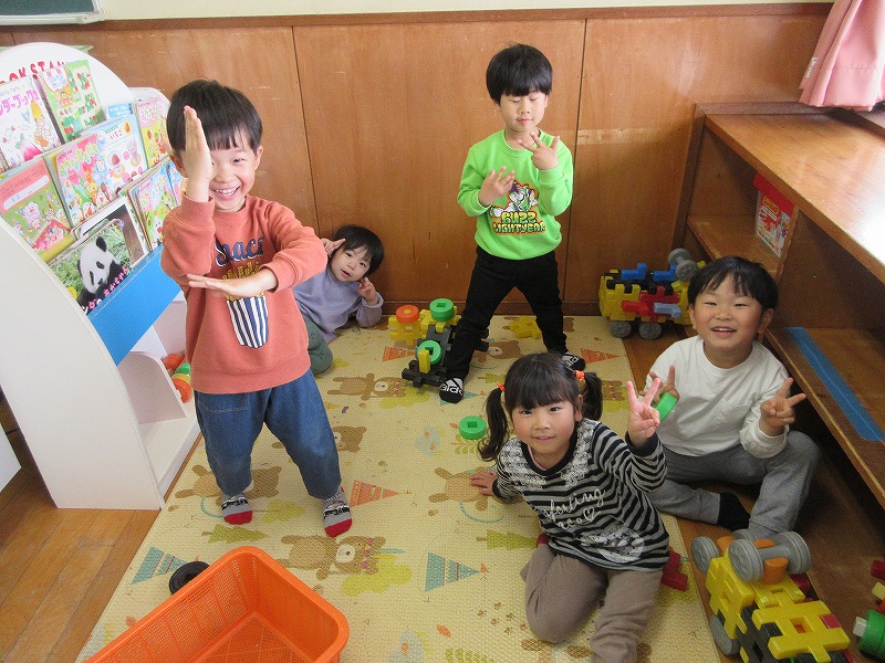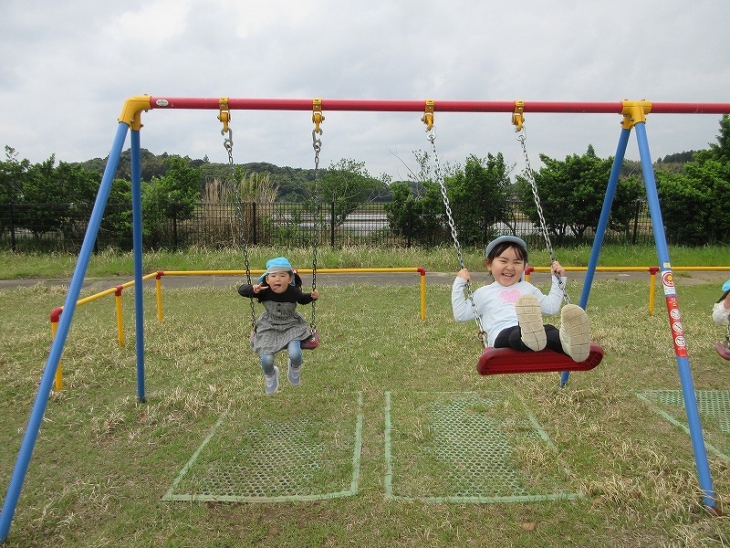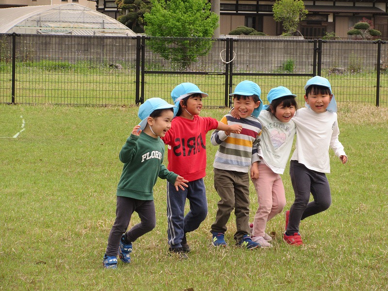 緊張した表情が和らぎ、友だちと一緒にいるだけで大盛り上がりです。環境にも慣れてきたので行動範囲が広がり、ますます楽しくなりそうな様子が見られます。これからも楽しく過ごしていきたいと思います。