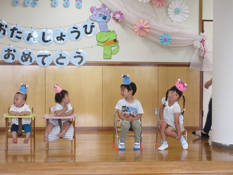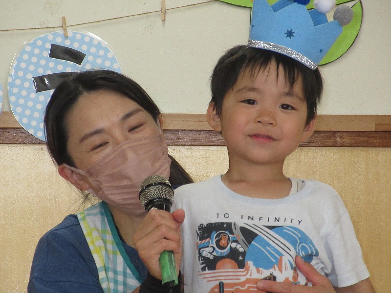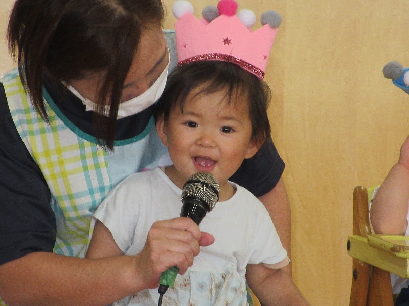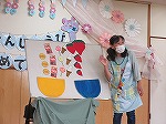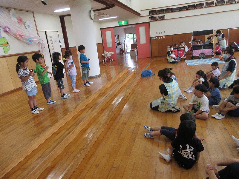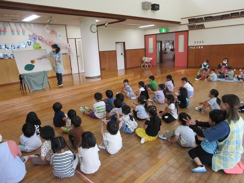 出し物のパネルシアターでは、あじさいの葉っぱから出てくるカタツムリを喜んで見たり、ふしぎなポケットの歌に合わせて次々出てくる美味しい食べ物たちに興奮気味の子ども達!!