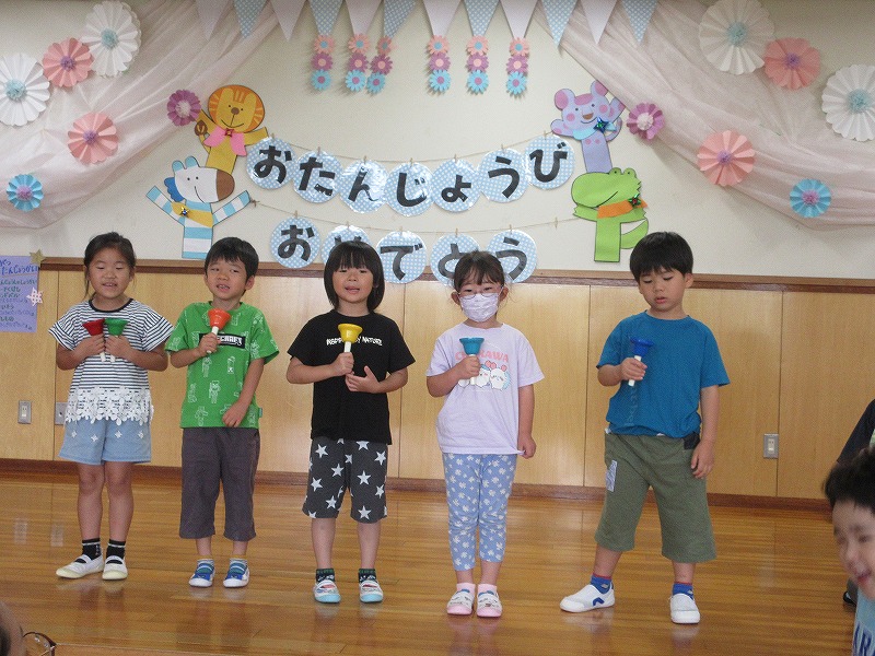 インタビューやろうそく消しをした後は、年長さんによるハンドベル「カエルの合唱」の可愛い音色がホールに響き渡りました♪