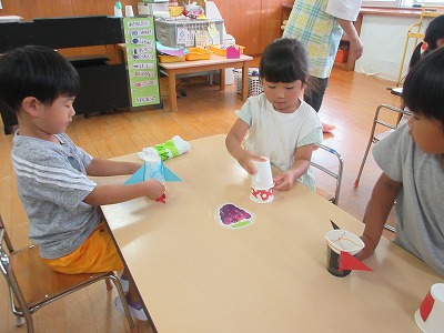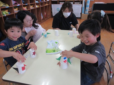 4歳児「紙コップでロケットを作りました」