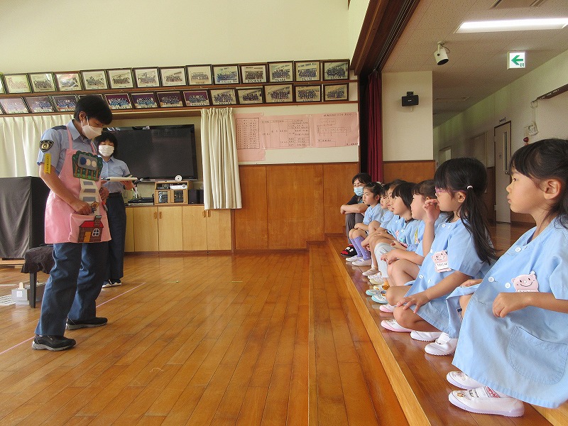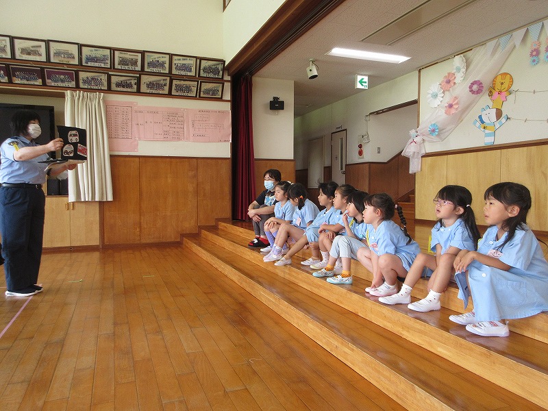 最後に命の大切さについて、知らない車に乗らない、近づかない、対応の仕方を教えてもらいました。お家でも、今日