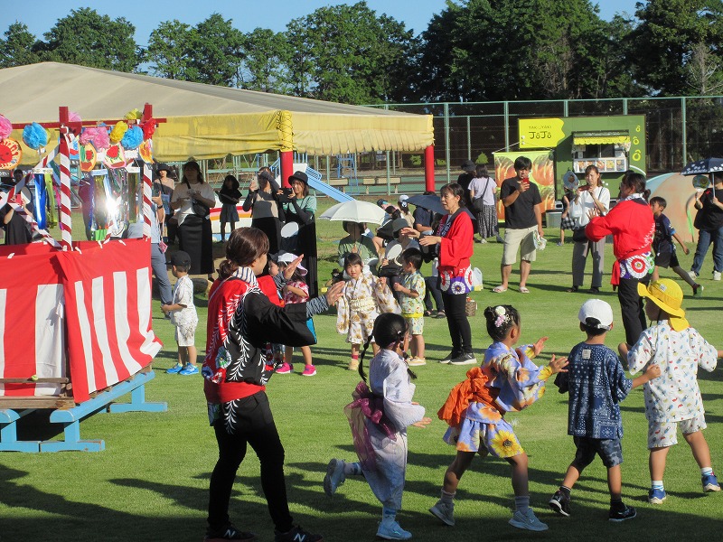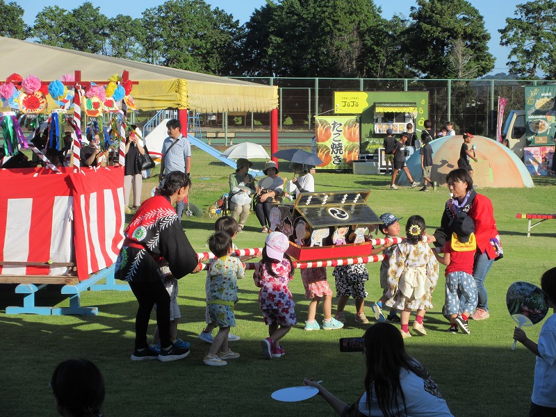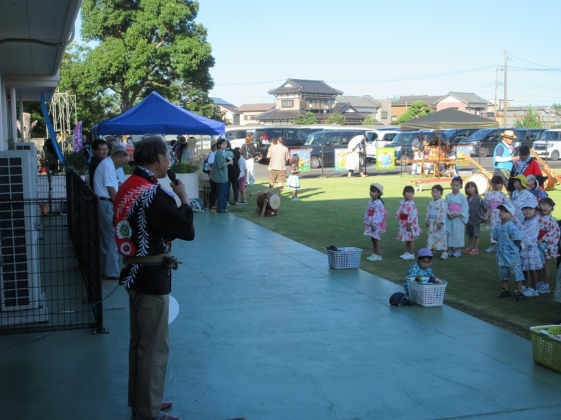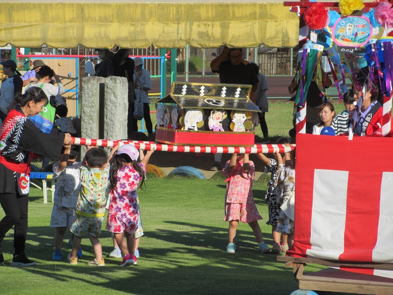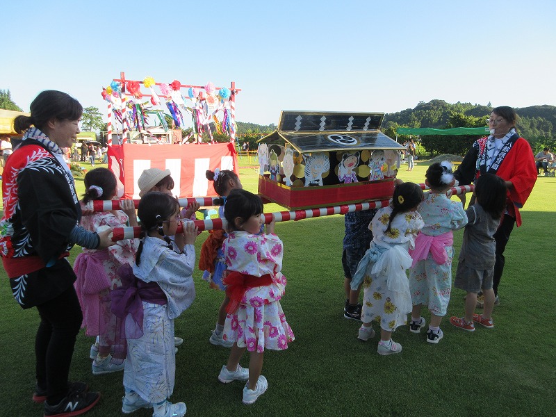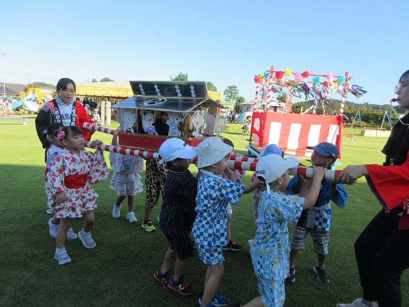 8月2日に保育園の夏祭りが行われました。遅い開催時間としました。子どもたちがお神輿かつぎを