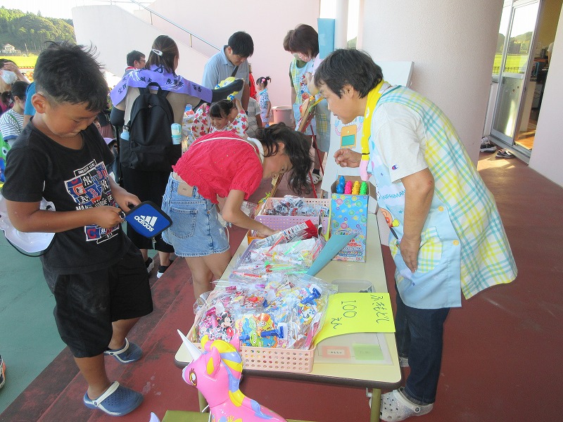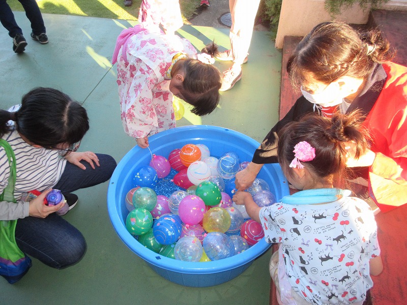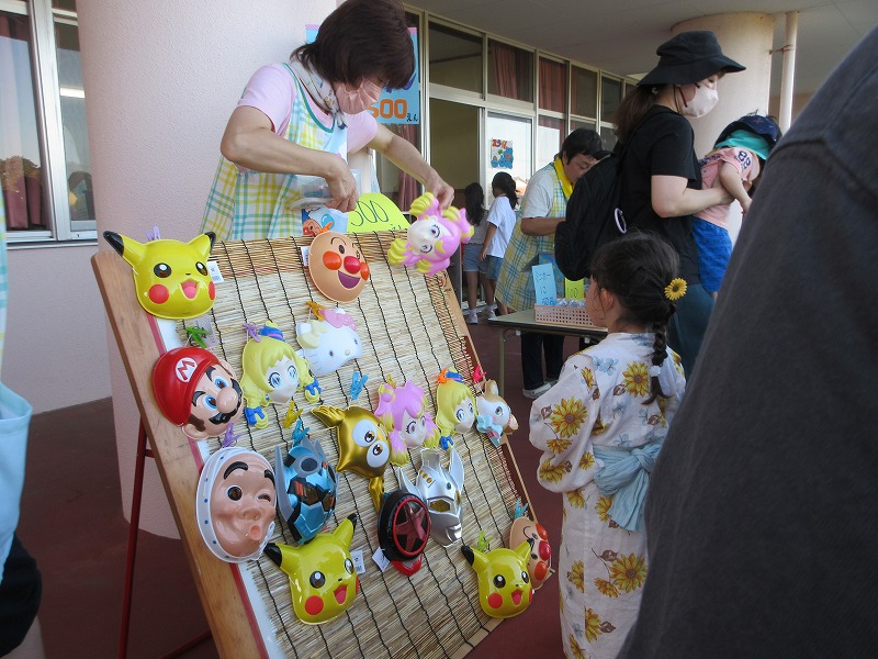 保育園での模擬店は「オモチャ」「水ヨーヨー」「おめん」を販売し、保護者会の役員さんにもご協力頂き