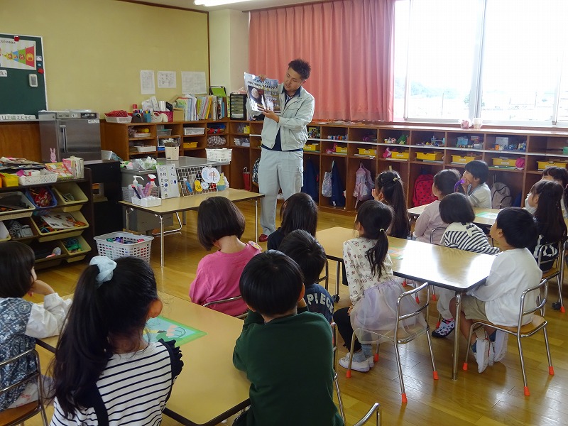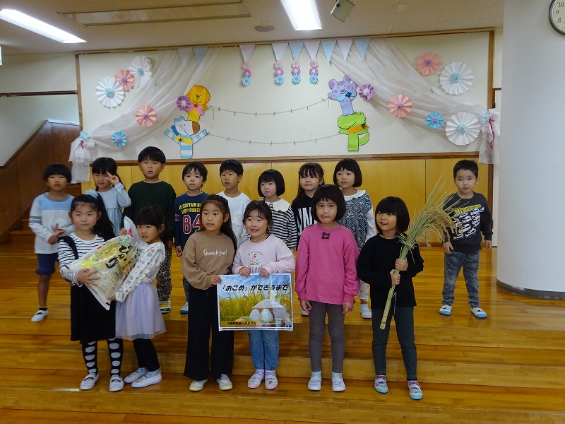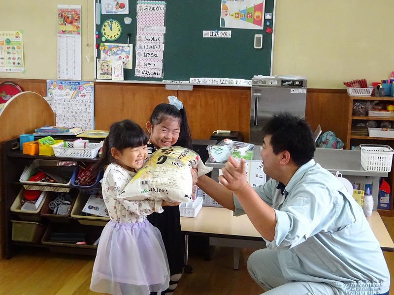お話しをして頂きました。 初めにJAかとりさんより保育園に10sのお米を頂き、年長さんが