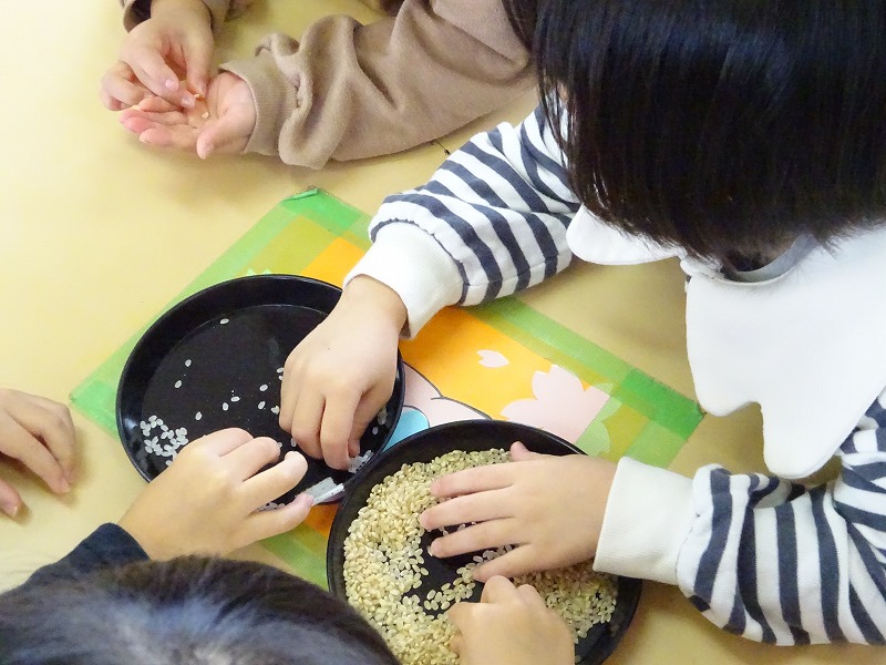 地域交流活動(食育活動)でJAかとり山田支店さんより7名の方が来園し、お米が出来るまで等の