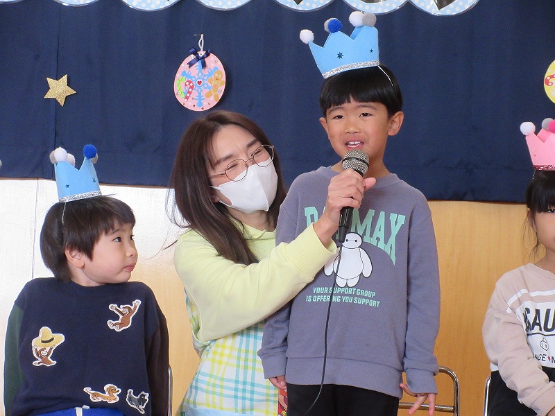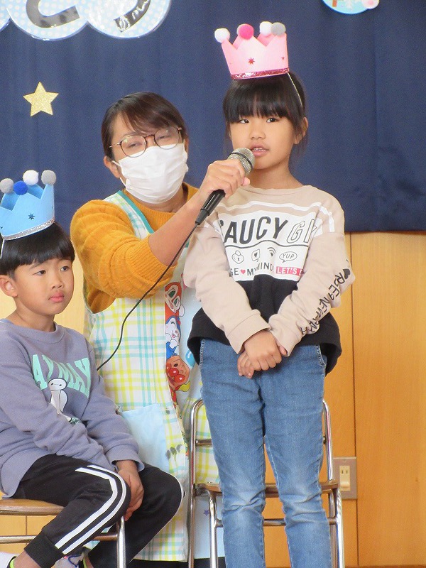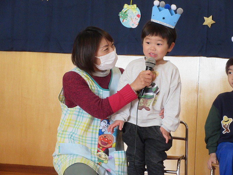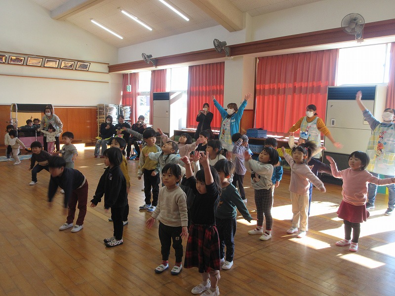 昨年よりも一つ大きくなったことで体だけではなく心も成長し頼もしさが感じられました。みんなで体操をしたり、ハンドベルや出し物を見て楽しみました。