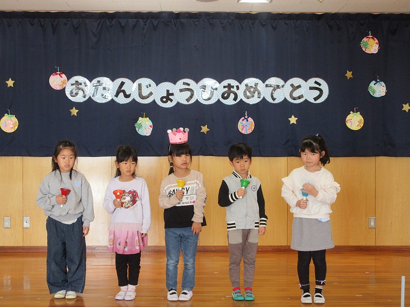 朝晩の寒さも日に日に増し、冬らし季節となりましたね。今日は12月の誕生会。4名の元気いっぱいのお友達です☆