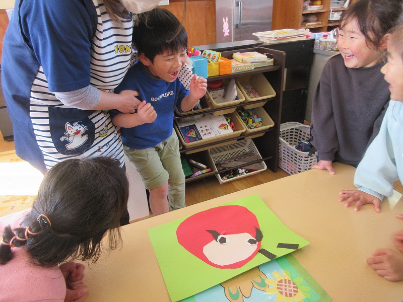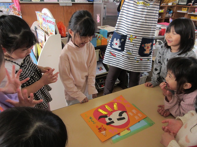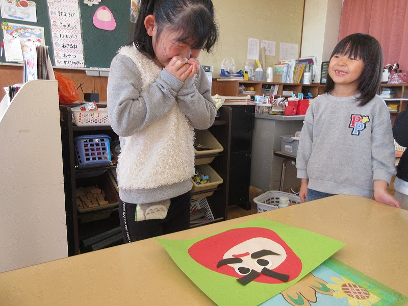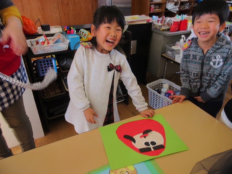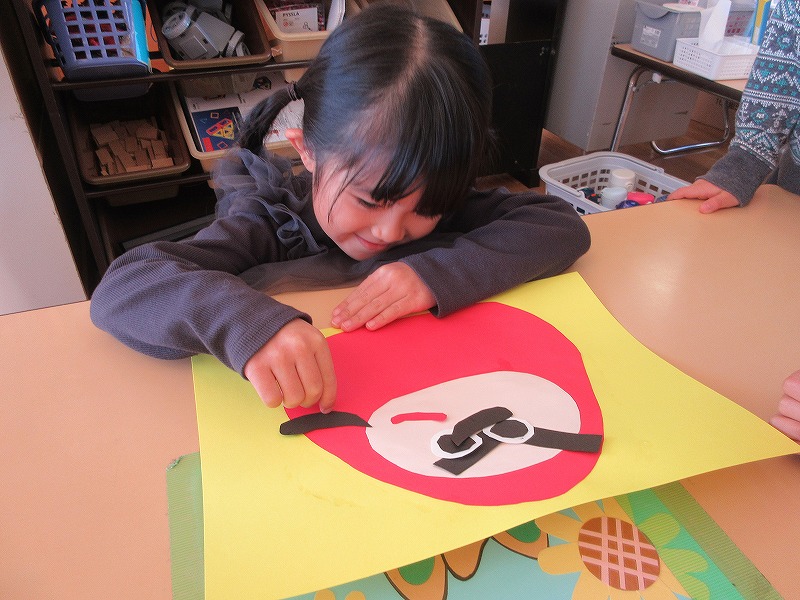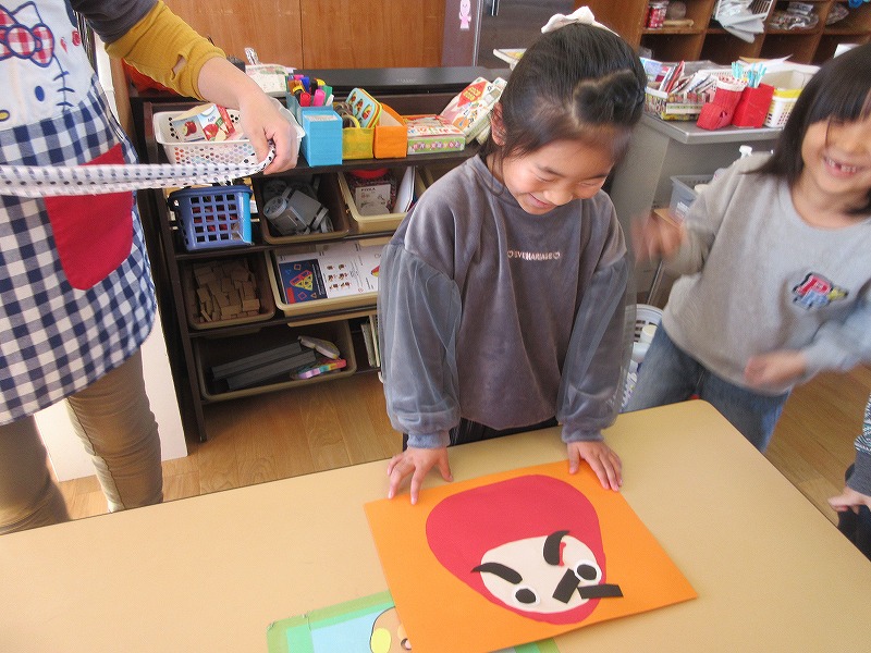 一月は福笑いに凧あげを満喫しました。福笑いでは、みんなのゲラゲラとにぎやかな声でいっぱいになり、幸せな