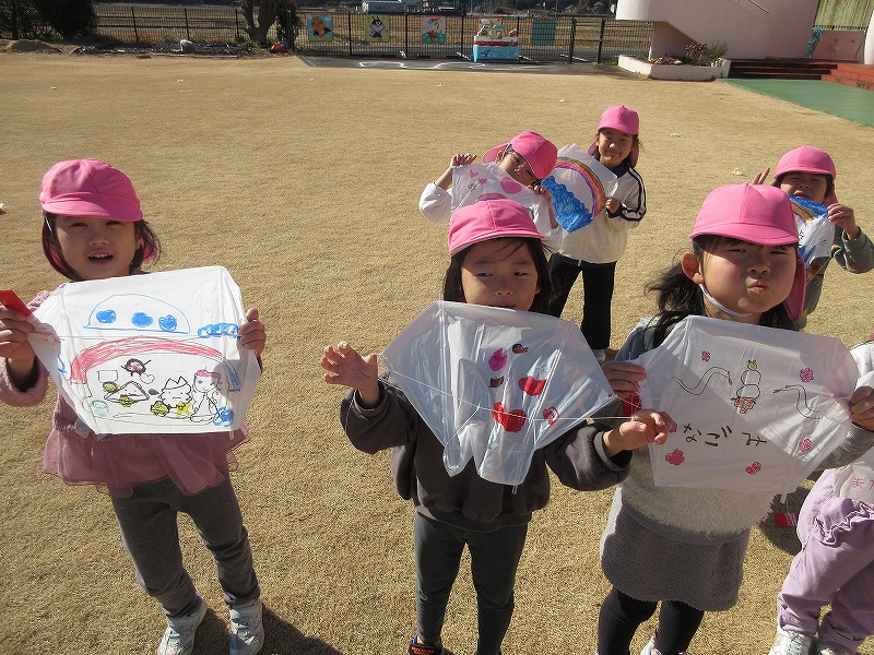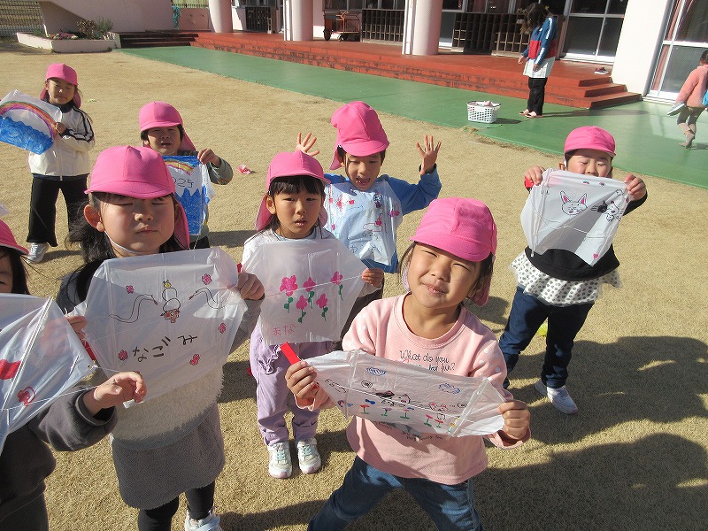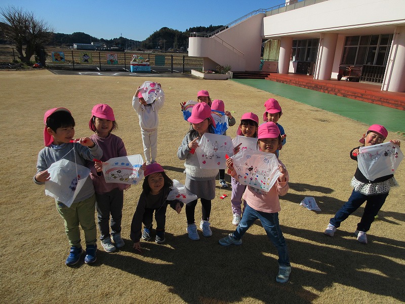 気持ちになりました?凧あげは、風向きや凧のあげ方を友達と考えながら高くあげることを楽しんでいた子ども達!
