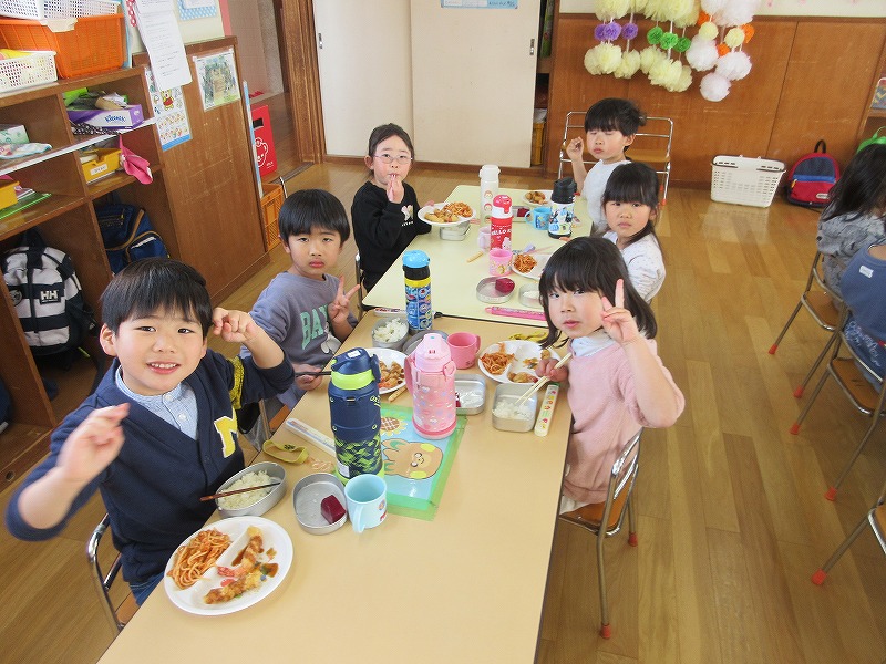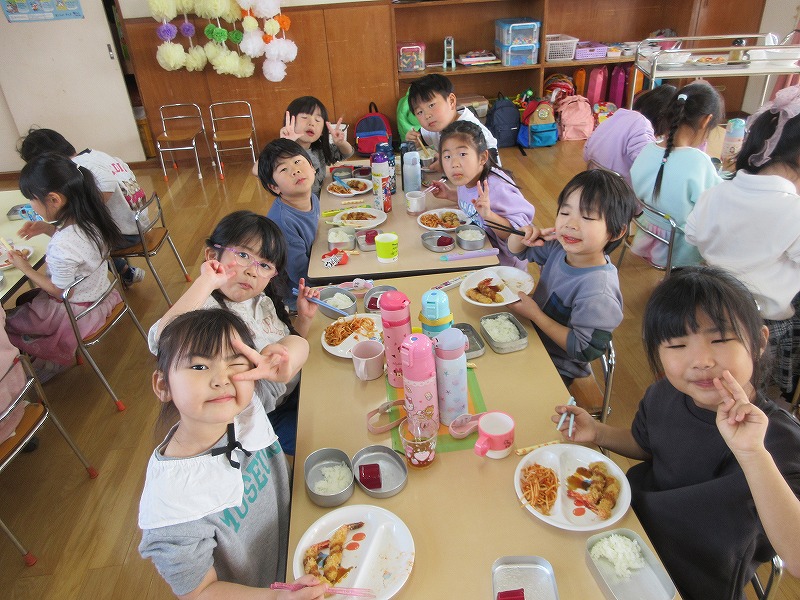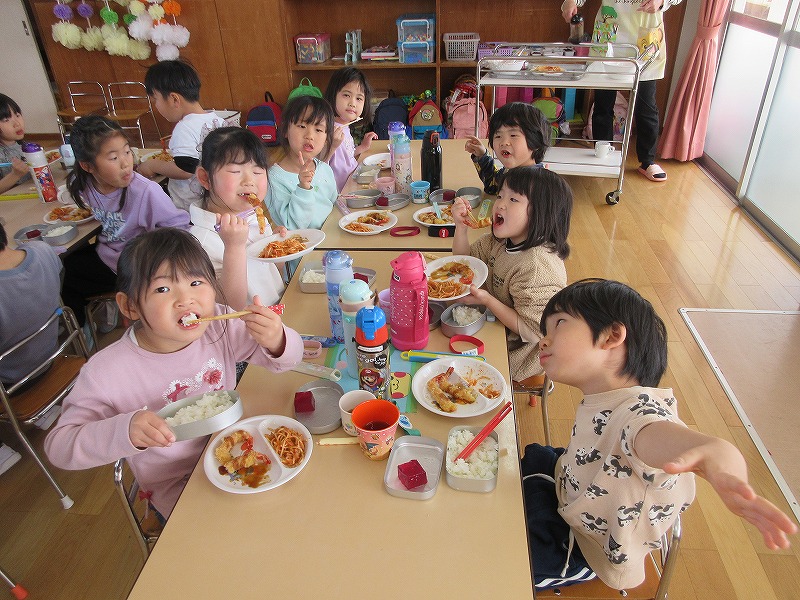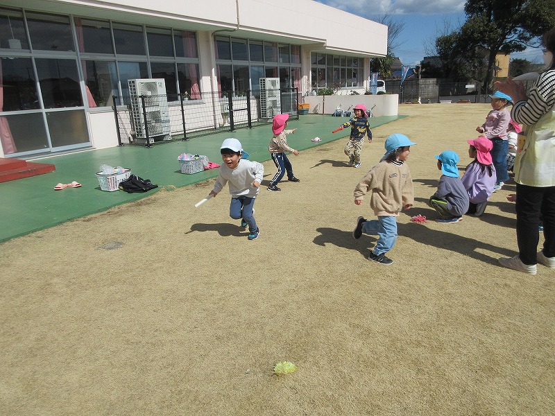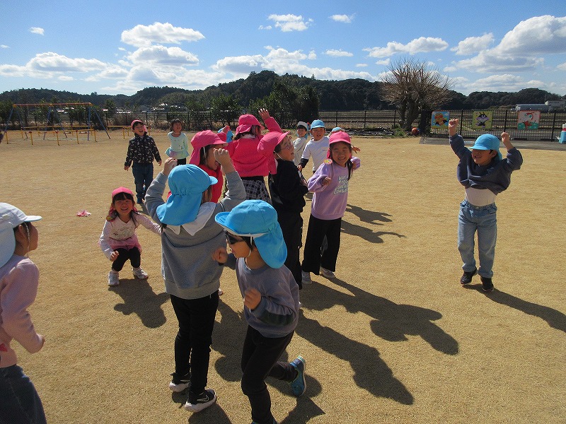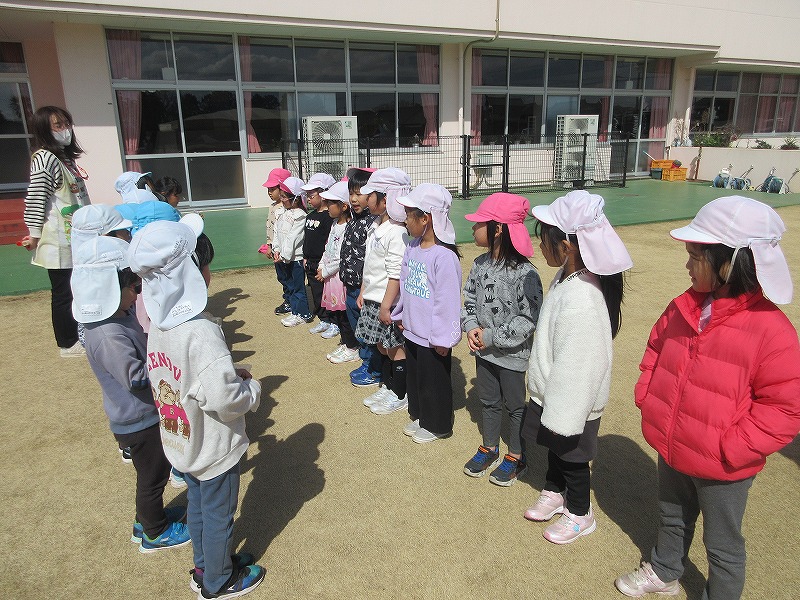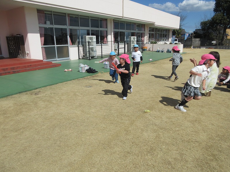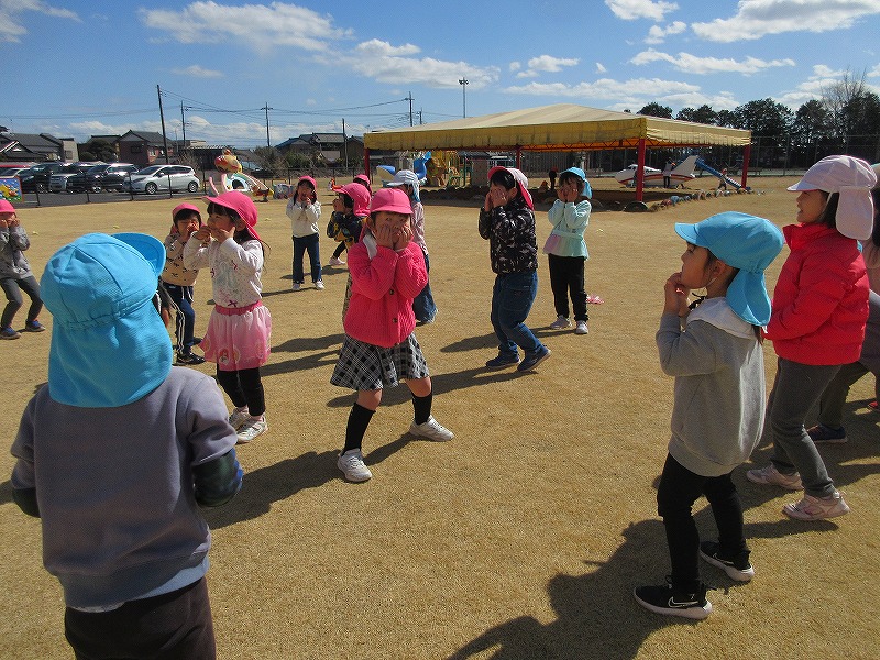 今日はうさぎ組ときりん組の2クラスでおたのしみ会をしみ、園庭でゲームをしたり一緒に給食も食べて楽しいひと時を過ごしました。うさぎ組のお友達と遊べるのも後少し…たくさん遊び思い出を作りたいと思います。